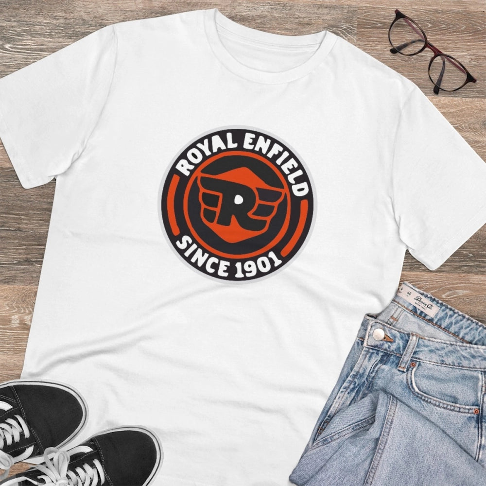 Men's PC Cotton Bike Ride Design Printed T Shirt (Color: White, Thread Count: 180GSM)