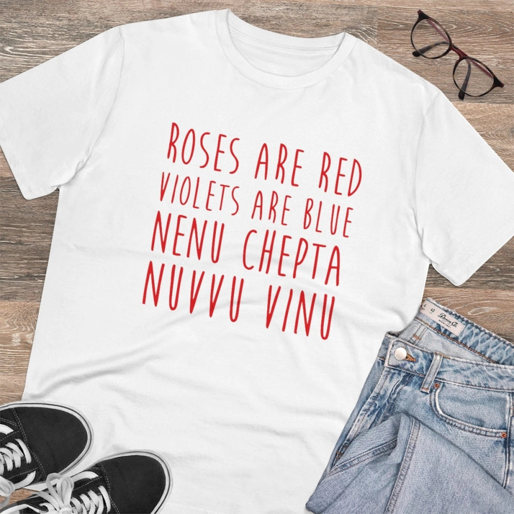 Men's PC Cotton Telugu Desing Printed T Shirt (Color: White, Thread Count: 180GSM)