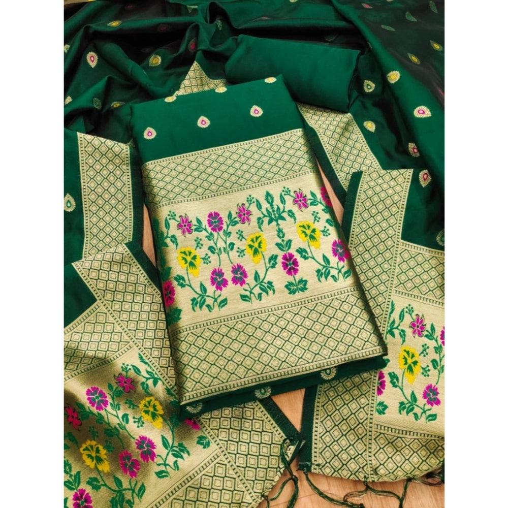 Women's Banarasi Silk Printed Unstitched Salwar Suit Material With Dupatta
